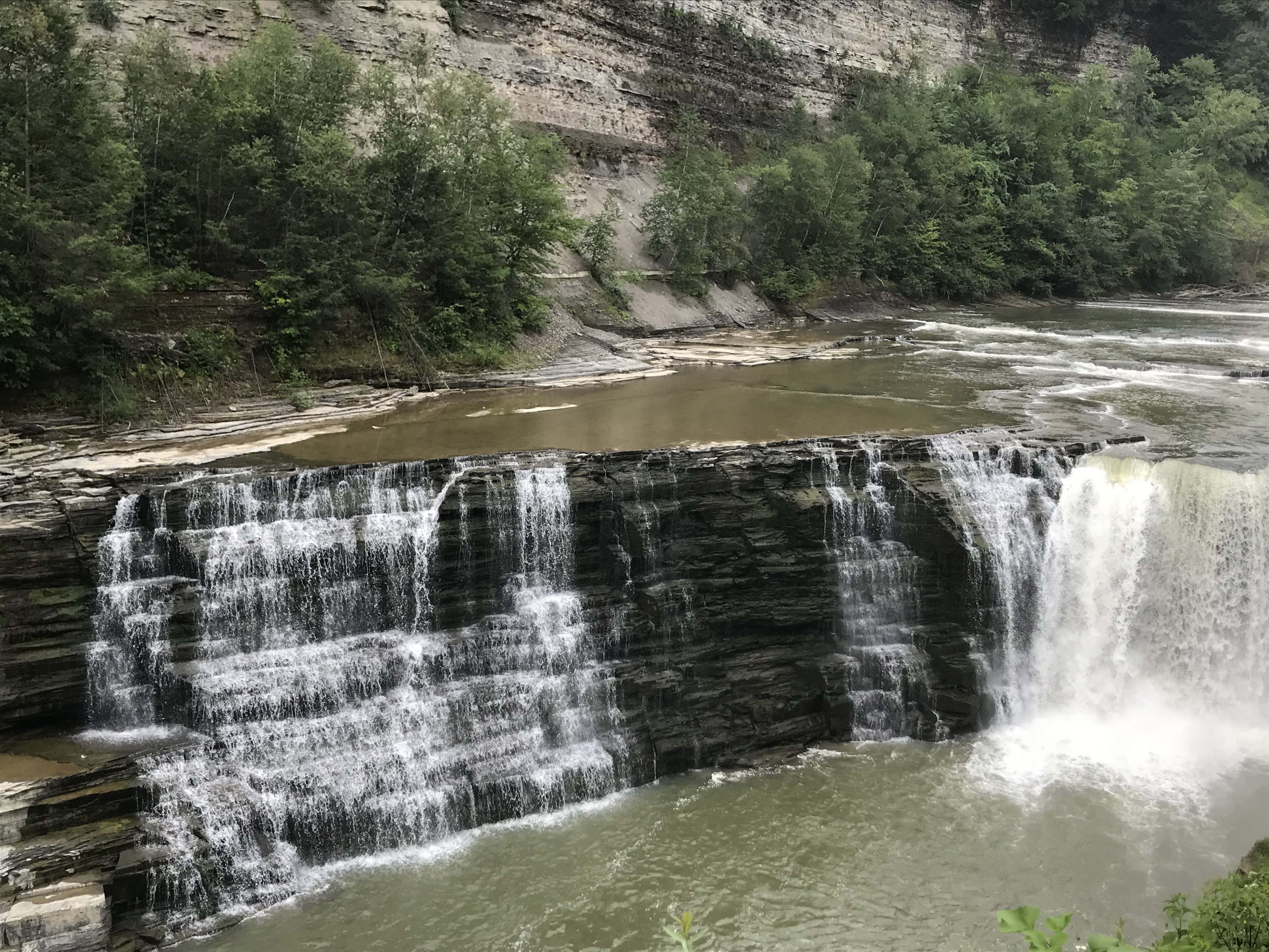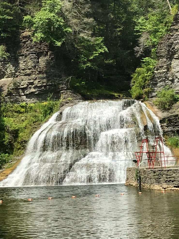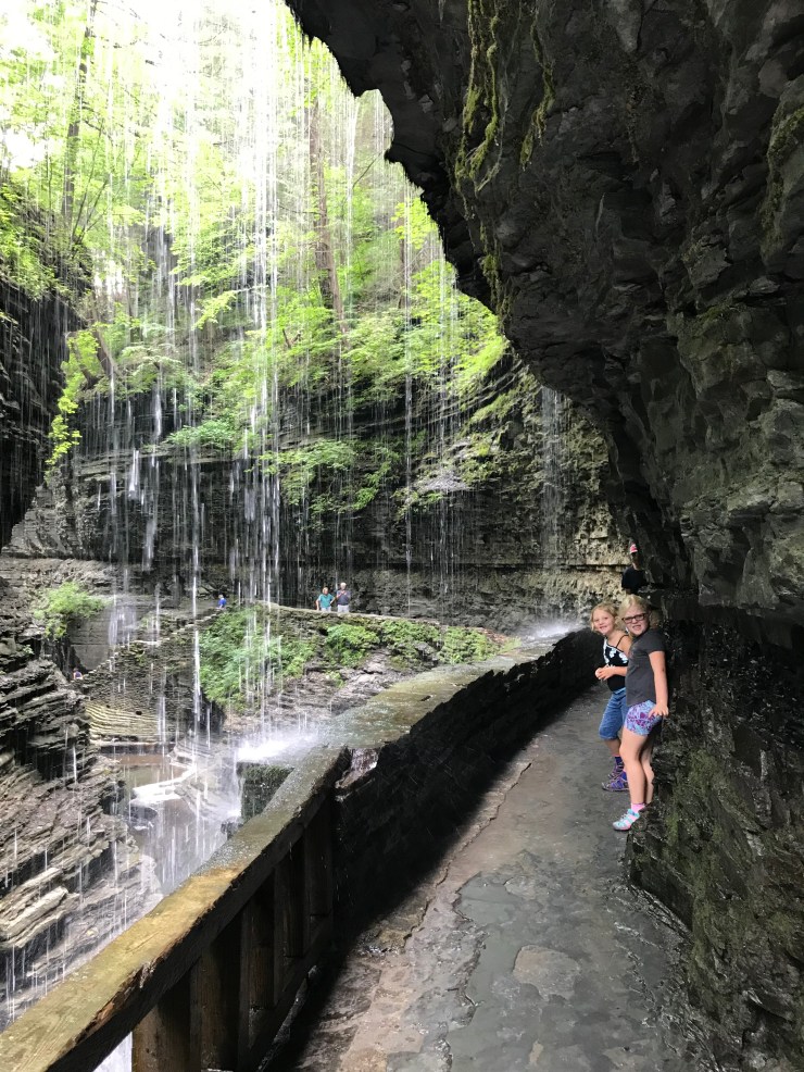 We took a day trip from Taughannock Falls State Park to Robert H Treman State Park. This park has the coolest spot to swim at the base of a waterfall. Unfortunately swimming was closed so we weren’t able to get in. From the parks upper entrance we hiked down to Lucifer Falls. It was hot and sunny when we set out to hike and just as we got to the falls a dark cloud rolled in and we were caught in the thunder and rain. The thunderstorms made for a memorable hike and the hike was so beautiful.