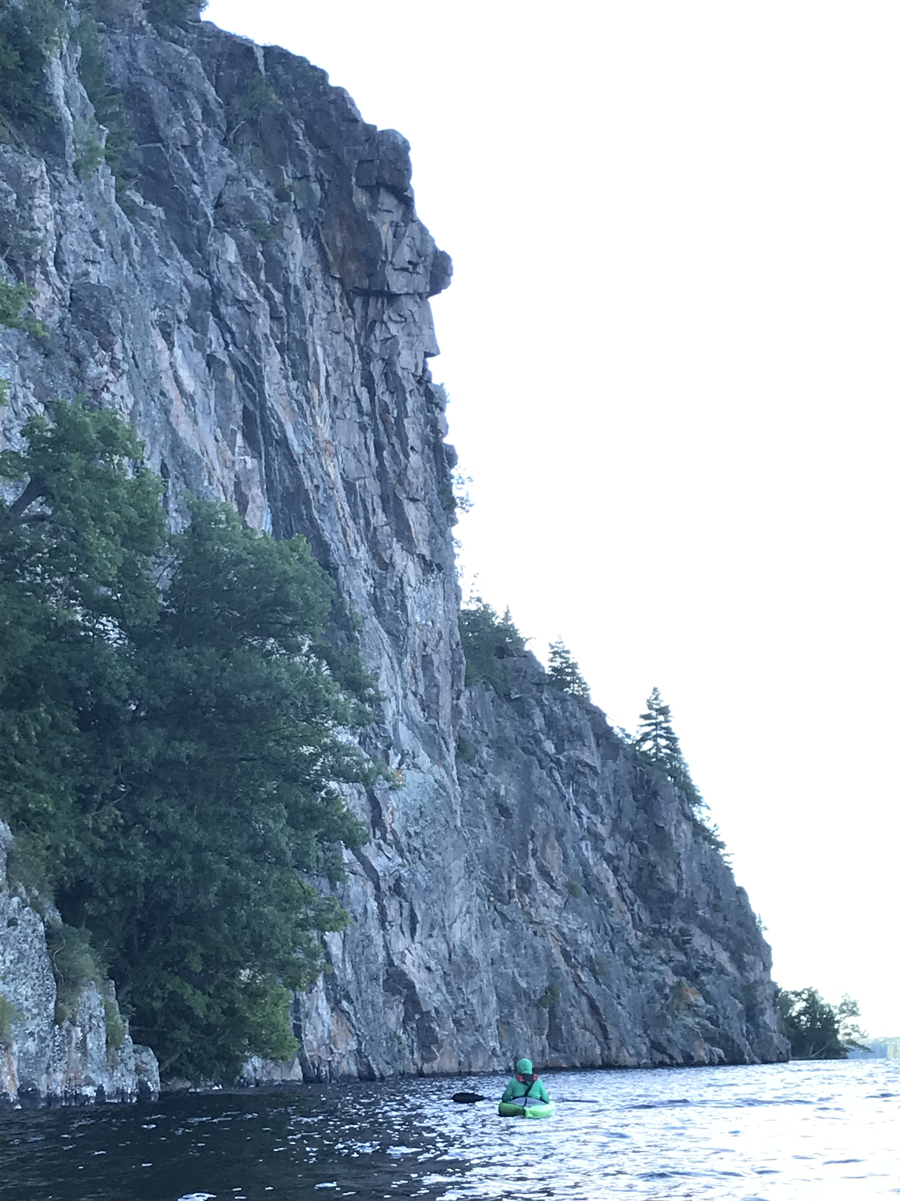 We crossed back into Canada and had our first experience with Bon Echo Provincial Park. A last minute cancellation gave us an opportunity to move to an almost waterfront site. We were able to use our inflatable kayaks and launch the boat on Mazinaw Lake. What a beautiful spot! I was surprised to learn that this lake is along a fault line which created the steep rock face and the like is just over 500 feet deep in its deepest point. We spend many hours during our three days here touring around the lake on the boat. The lake was also surprisingly warm for swimming given the depth of it. This is a park we will definitely return to…our favourite so far on this trip!