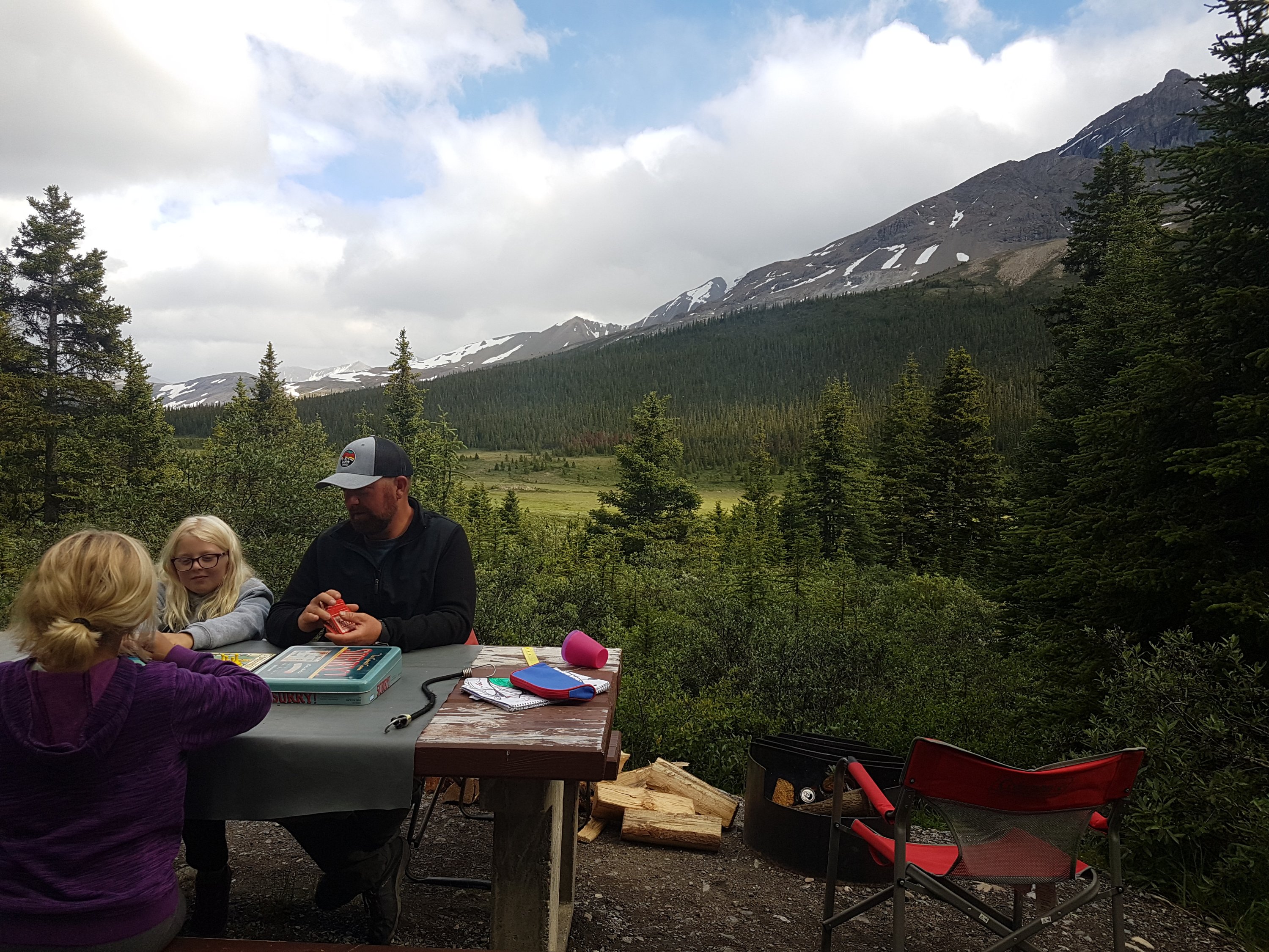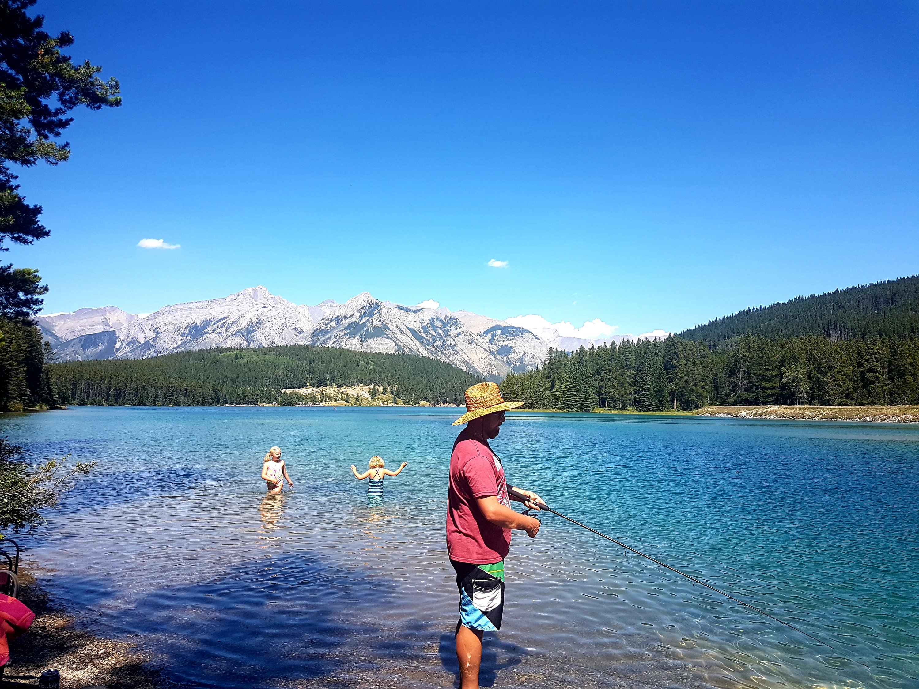 Our last two nights in Banff we had a perfect campsite at this quiet campground outside of the busy town of Banff. We had a nice swim hole, fishing spot and kayak launch behind our campsite. It was the perfect ending to a fantastic visit to the Canadian Rockies.