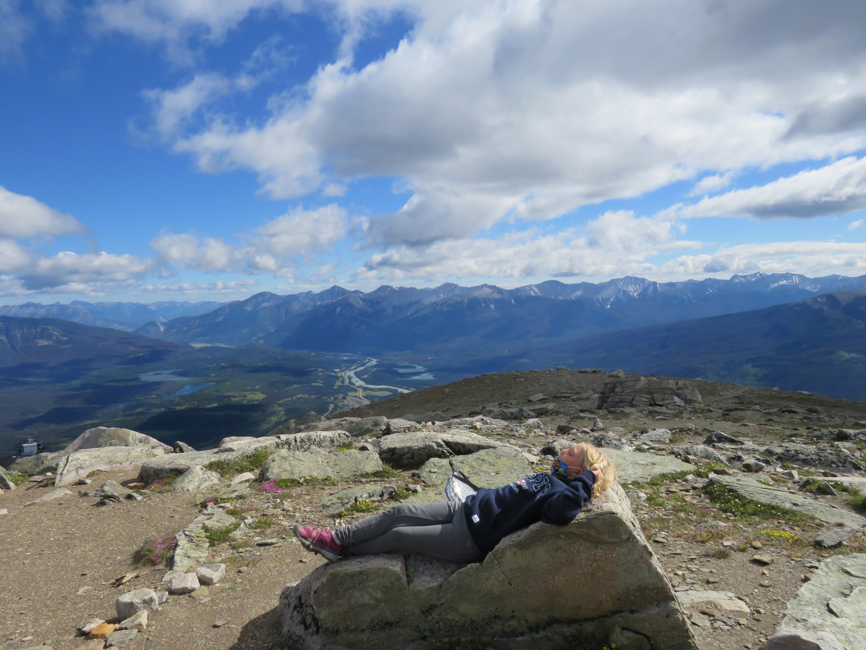 We rode the Jasper skytram to the top of Whistler mountain (named for the marmots who make “whistling” noises if you get to close). From the top of the skytram you can hike to the summit which is a steep 1.4 km, but the view from the top is incredible. We found some snow up there, and had a snowball fight and even managed to build a tiny snowman.